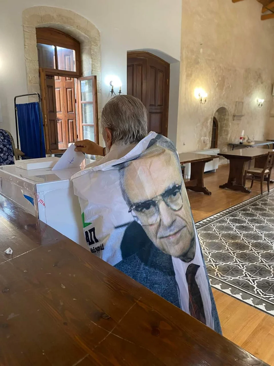 Χαρακτηριστική είναι η περίπτωση ενός κυρίου στο Ηράκλειο και πιο συγκεκριμένα στα Πεζά του Δήμου Αρχανών Αστερουσίων που τυλίχτηκε με πανό που είχε τον ιστορικό ηγέτη του ΠΑΣΟΚ και πήγε να ασκήσει το εκλογικό του δικαίωμα.